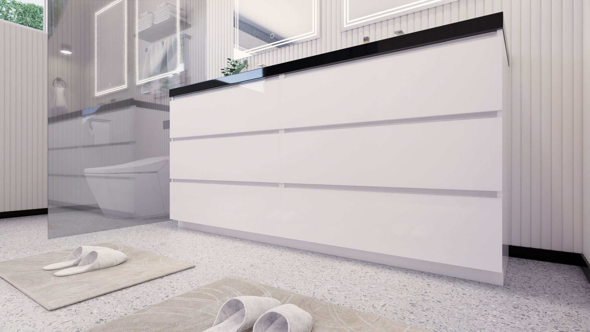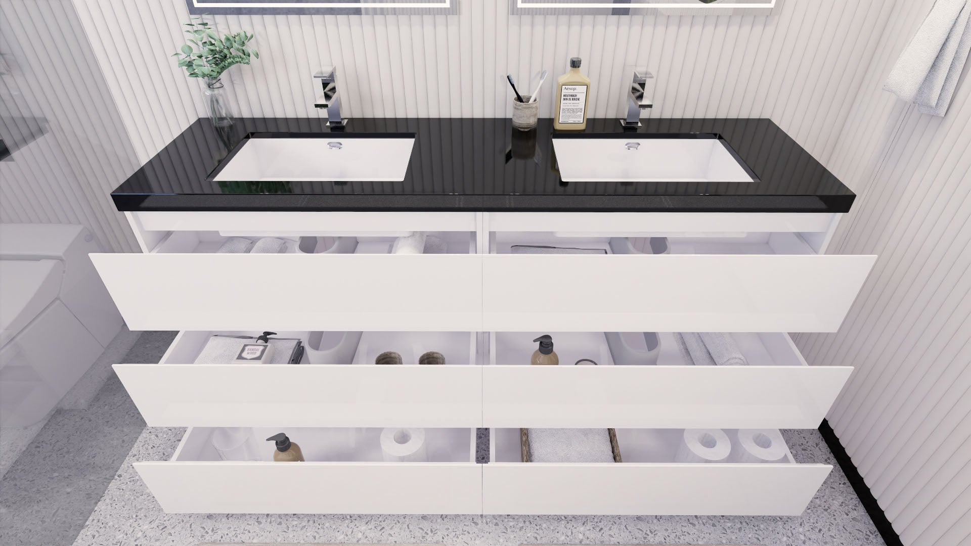 Stanley 72" High Gloss White Freestanding Vanity with Reinforced Acrylic Sinks