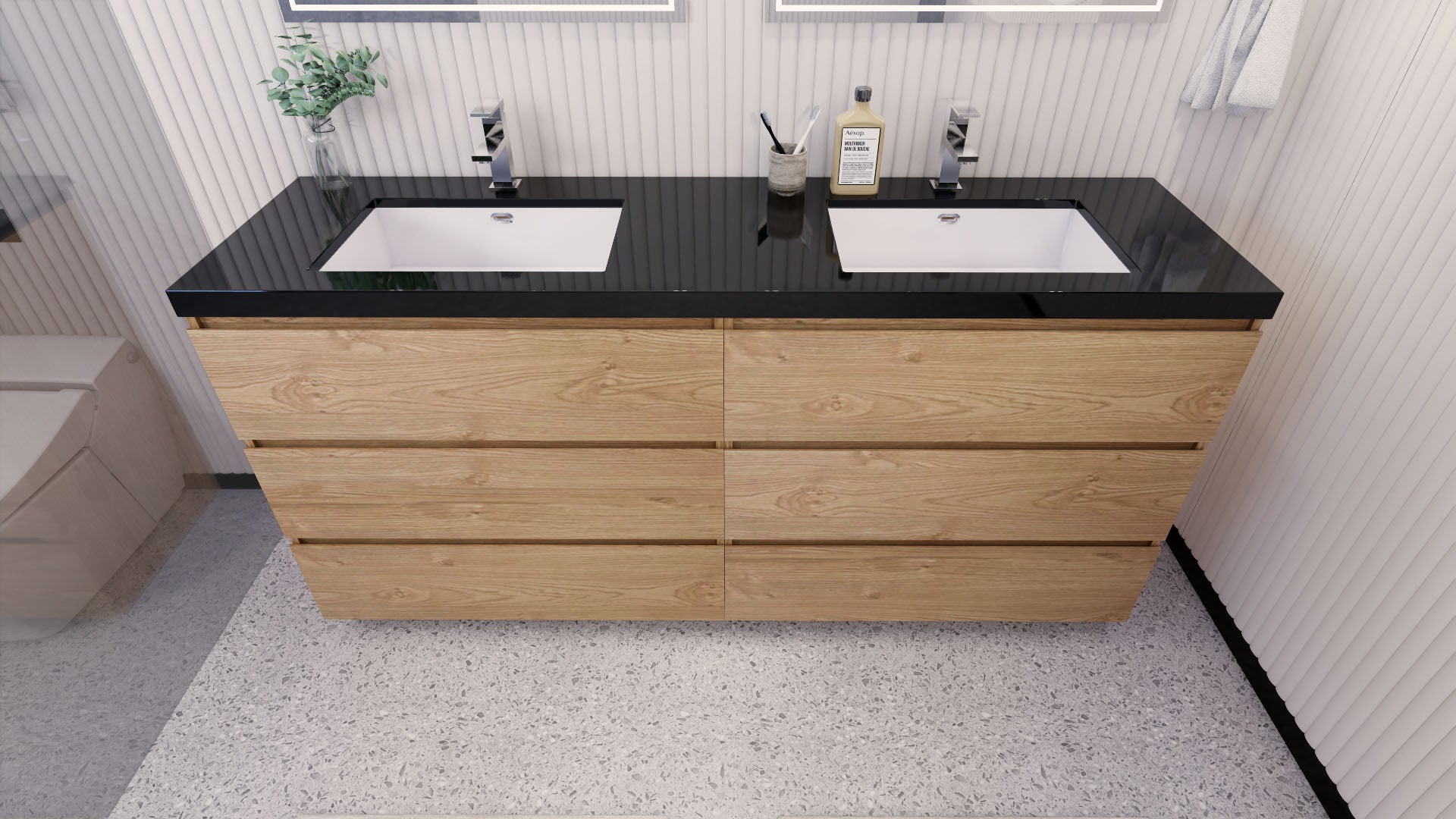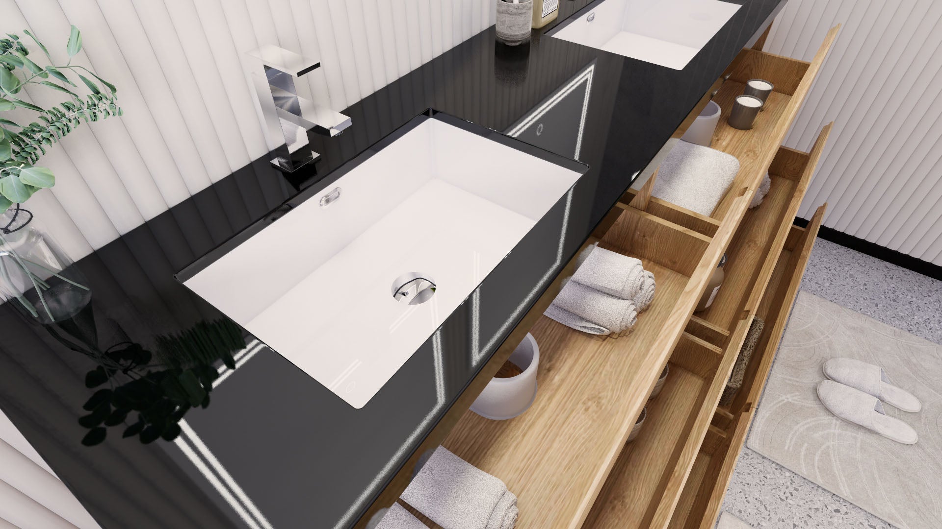 • Integrated European soft-closing hardware
