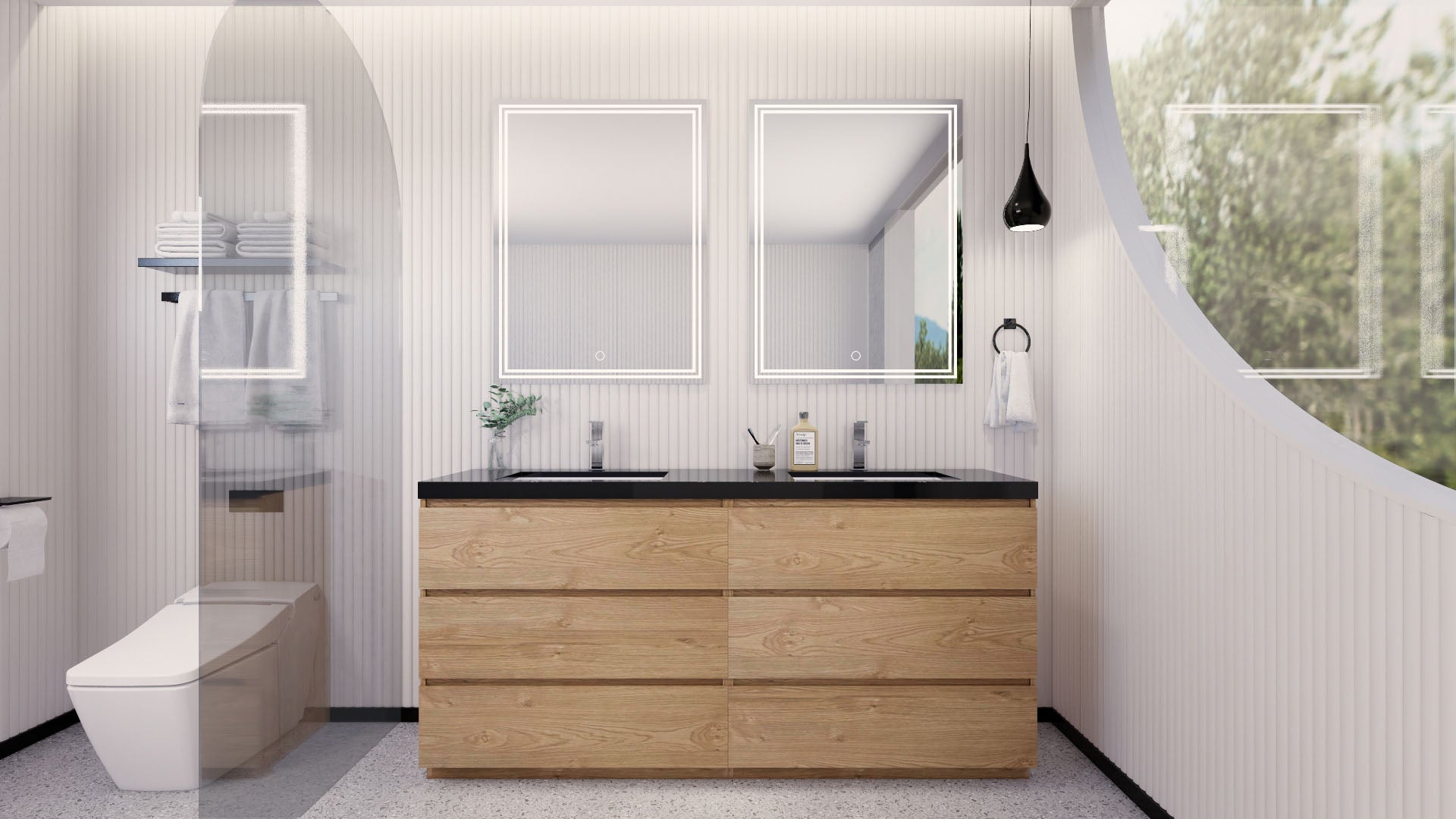 Stanley 72" New England Oak Freestanding Vanity with Reinforced Acrylic Sinks