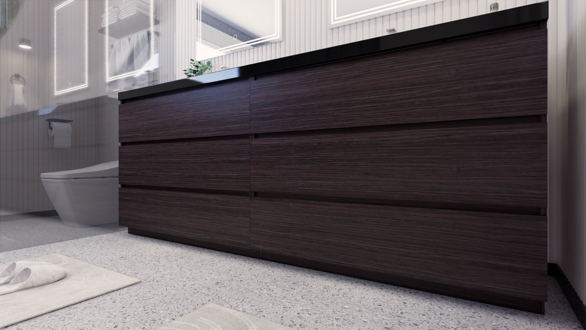 Stanley 84" Dark Gray Oak Freestanding Vanity with Reinforced Acrylic Sinks