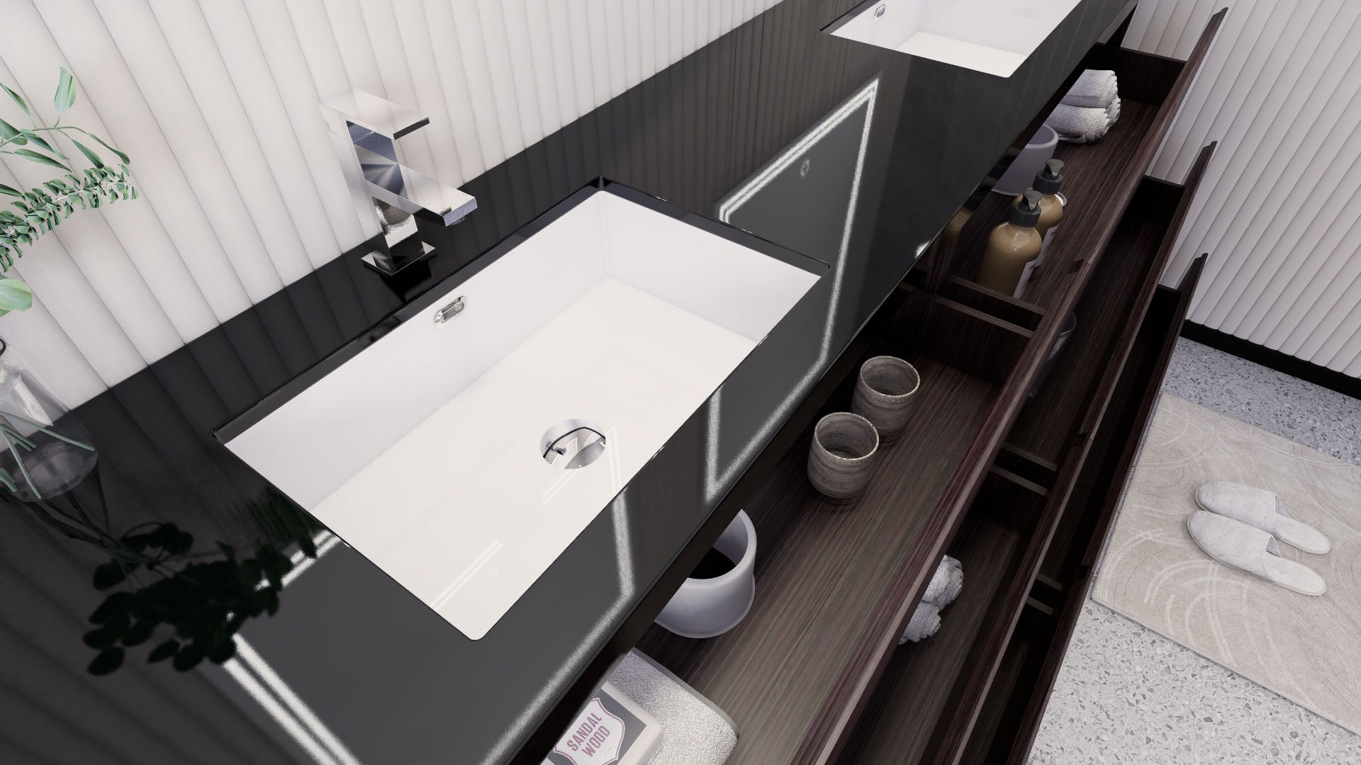 • Reinforced acrylic sink top