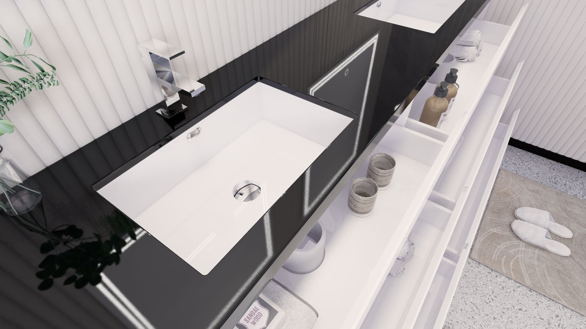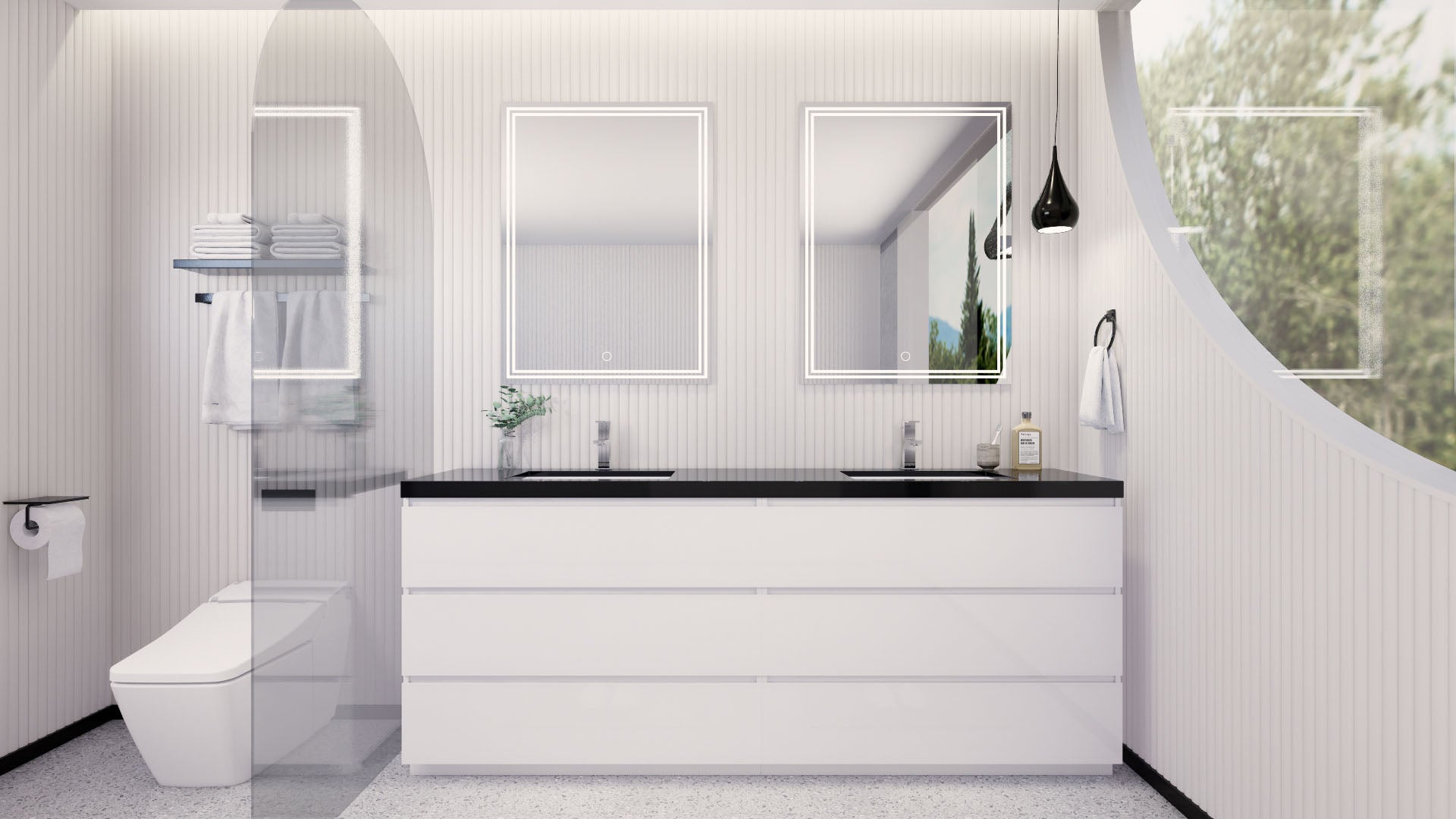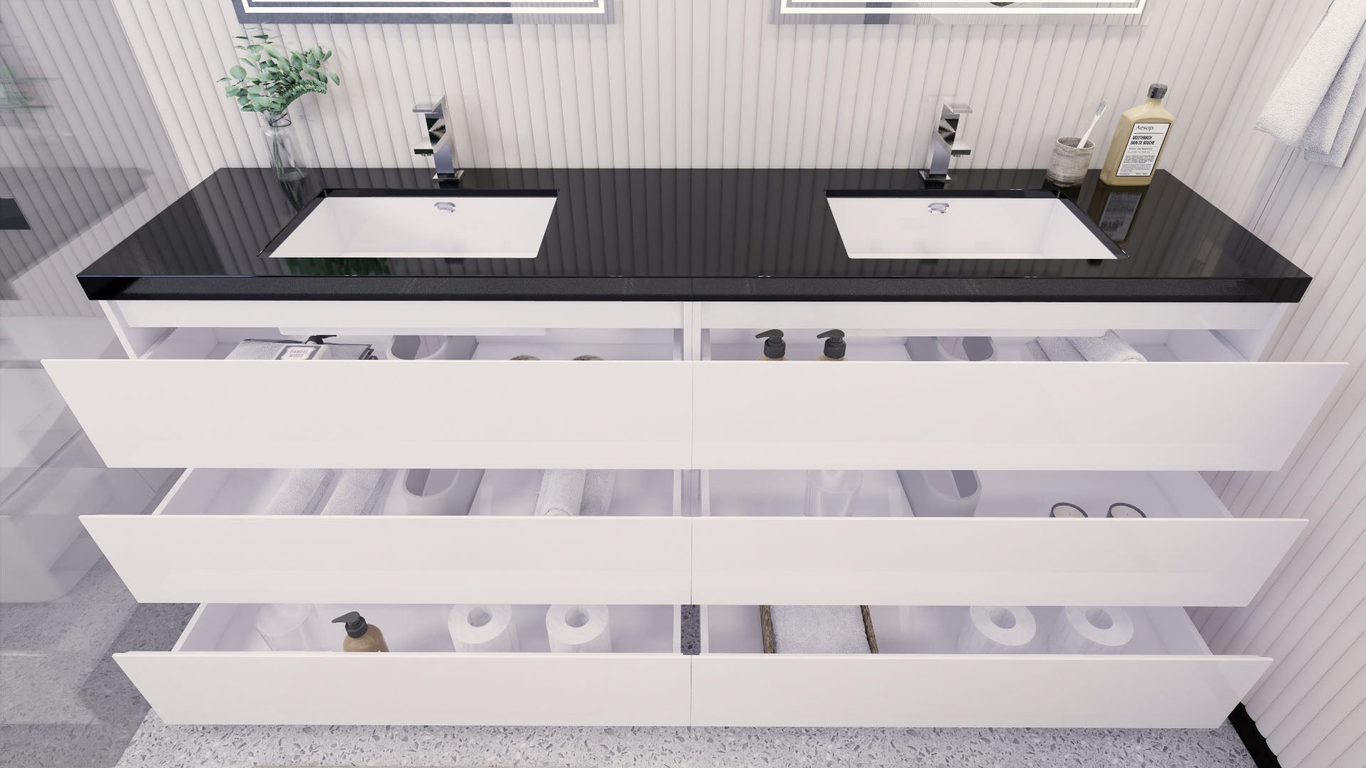 Stanley 84" High Gloss White Freestanding Vanity with Reinforced Acrylic Sinks