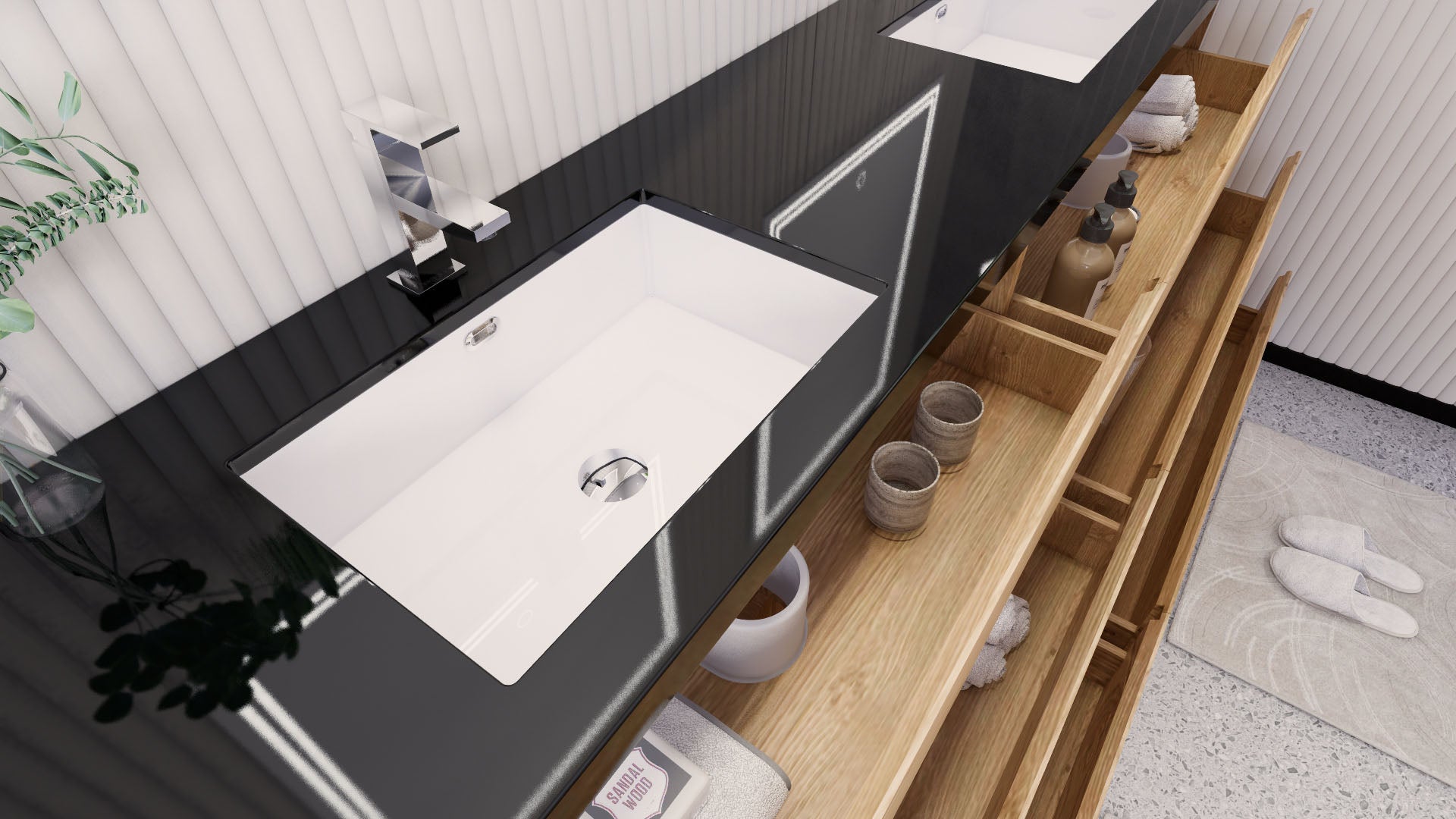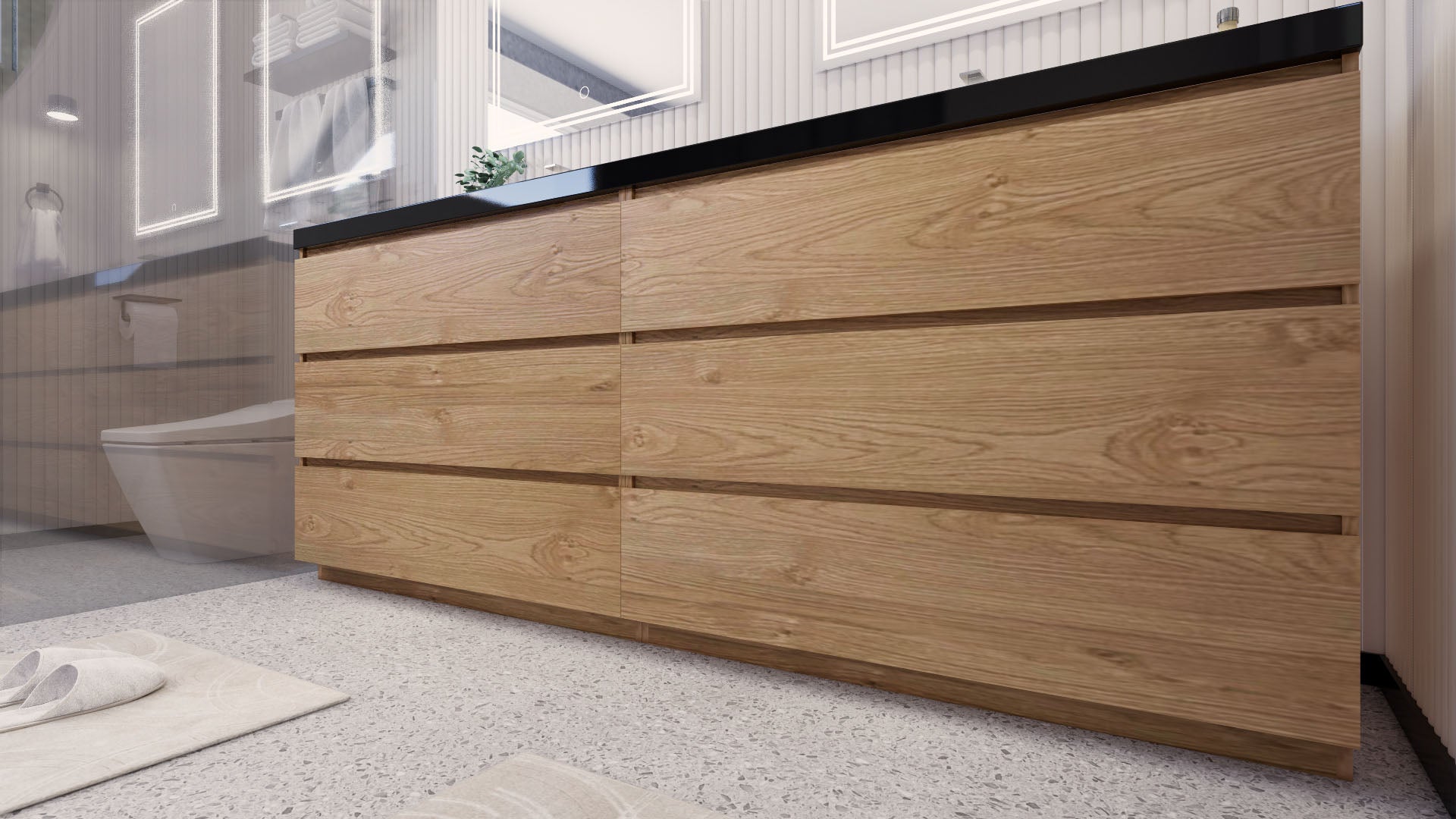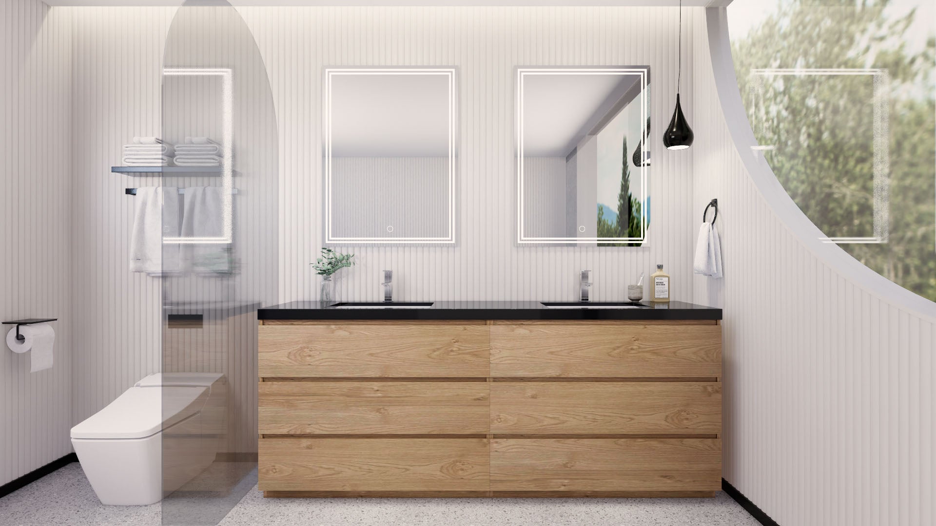 Stanley 84" New England Oak Freestanding Vanity with Reinforced Acrylic Sinks