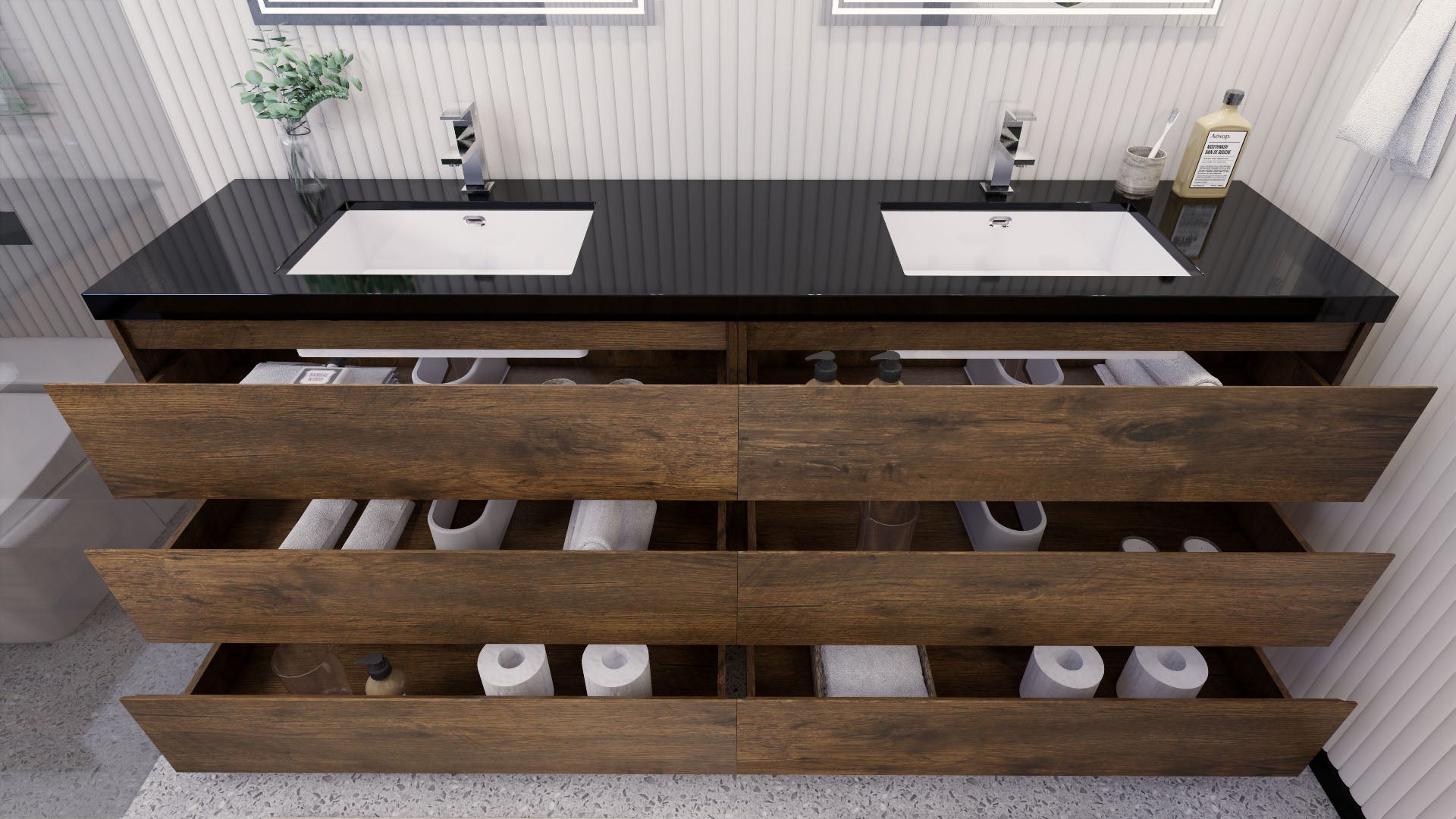 Stanley 84" Rosewood Freestanding Vanity with Reinforced Acrylic Sinks