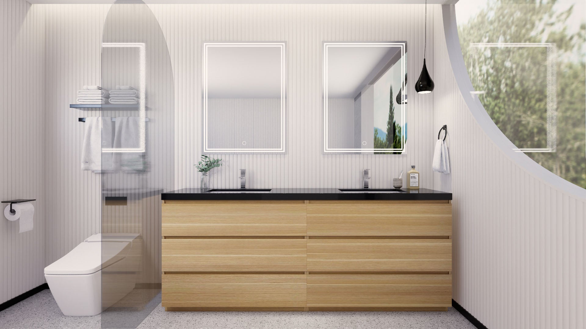 Stanley 84" White Oak Freestanding Vanity with Reinforced Acrylic Sinks