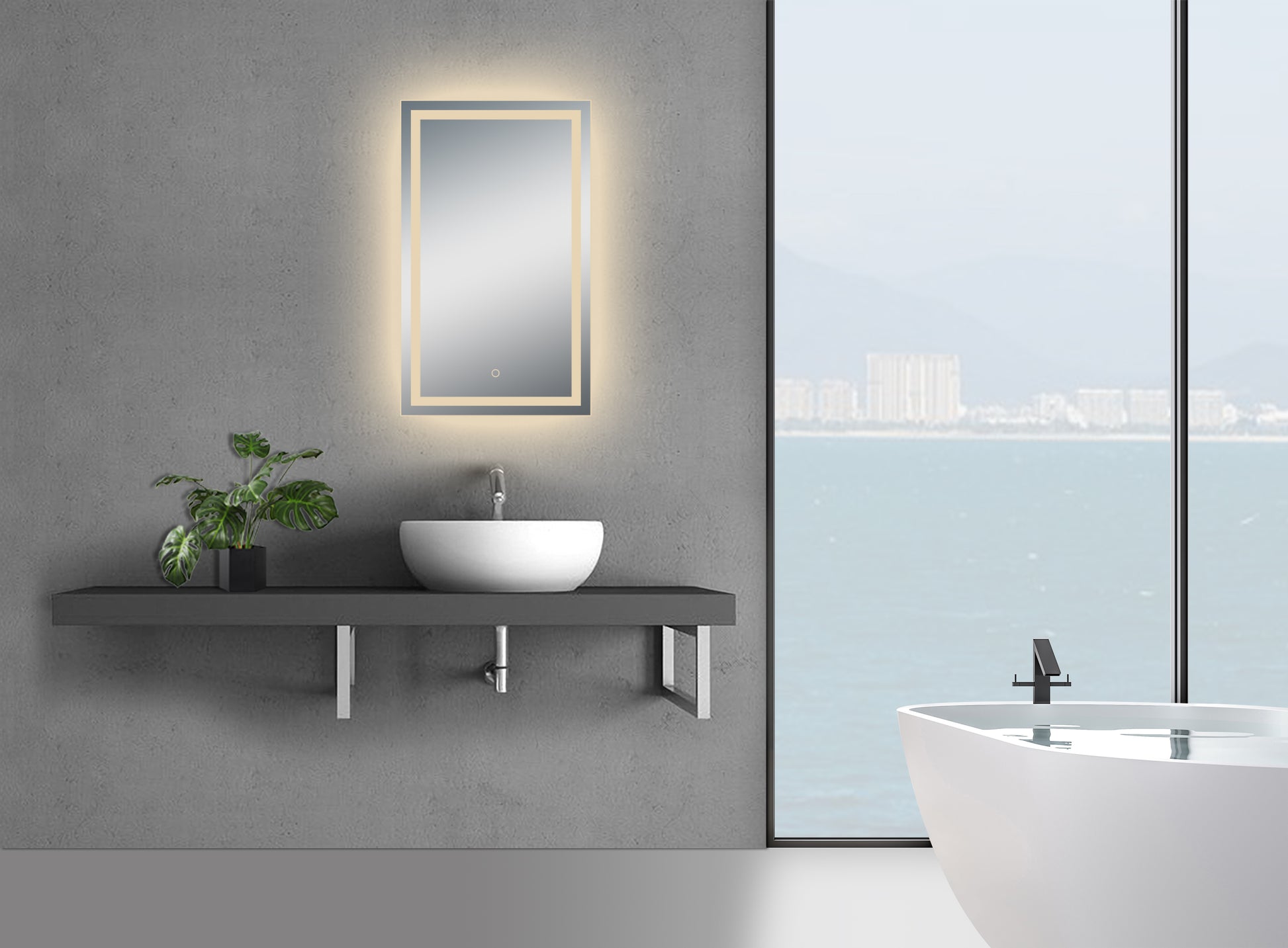 This LED mirror brings elegance and style to your bathroom décor. Back-lit LED lights set a perfect ambiance for a clear state of mind. Easy touch switch for easy on and off the power. LED temperature near 7000 Kelvin for a clean light with a subtle but distinct, blue hue. Mirror fully assembled with an electrical hardwire for quick setup. Available in various styles and sizes.